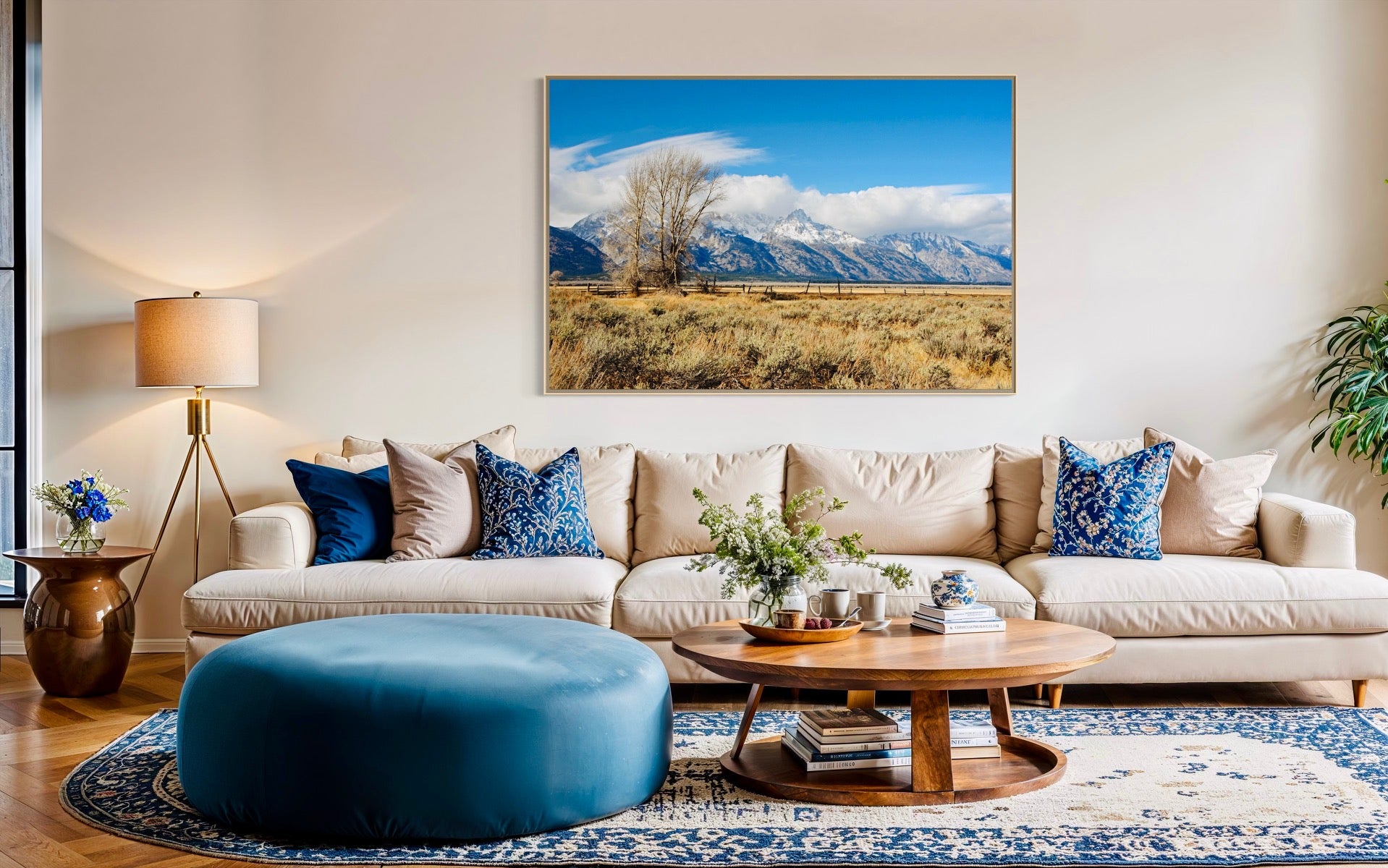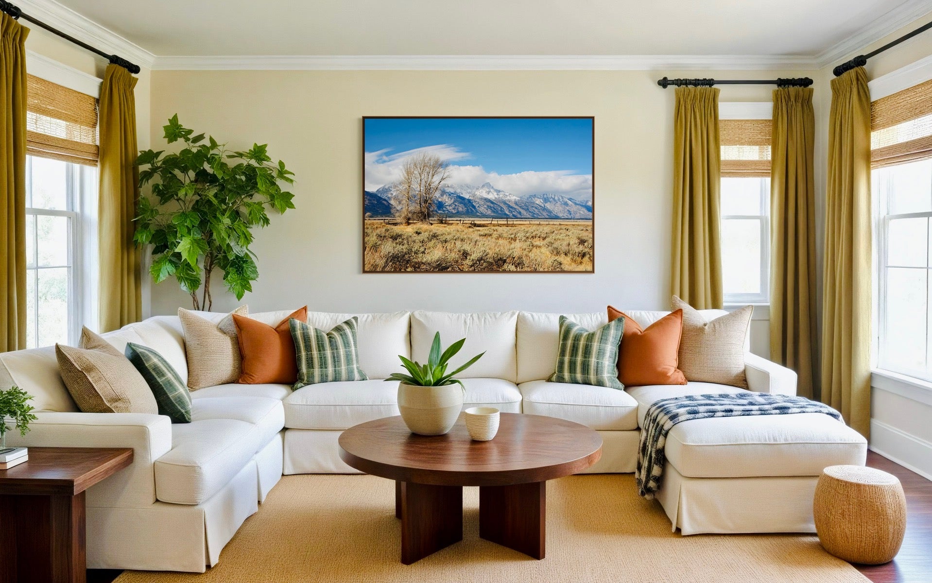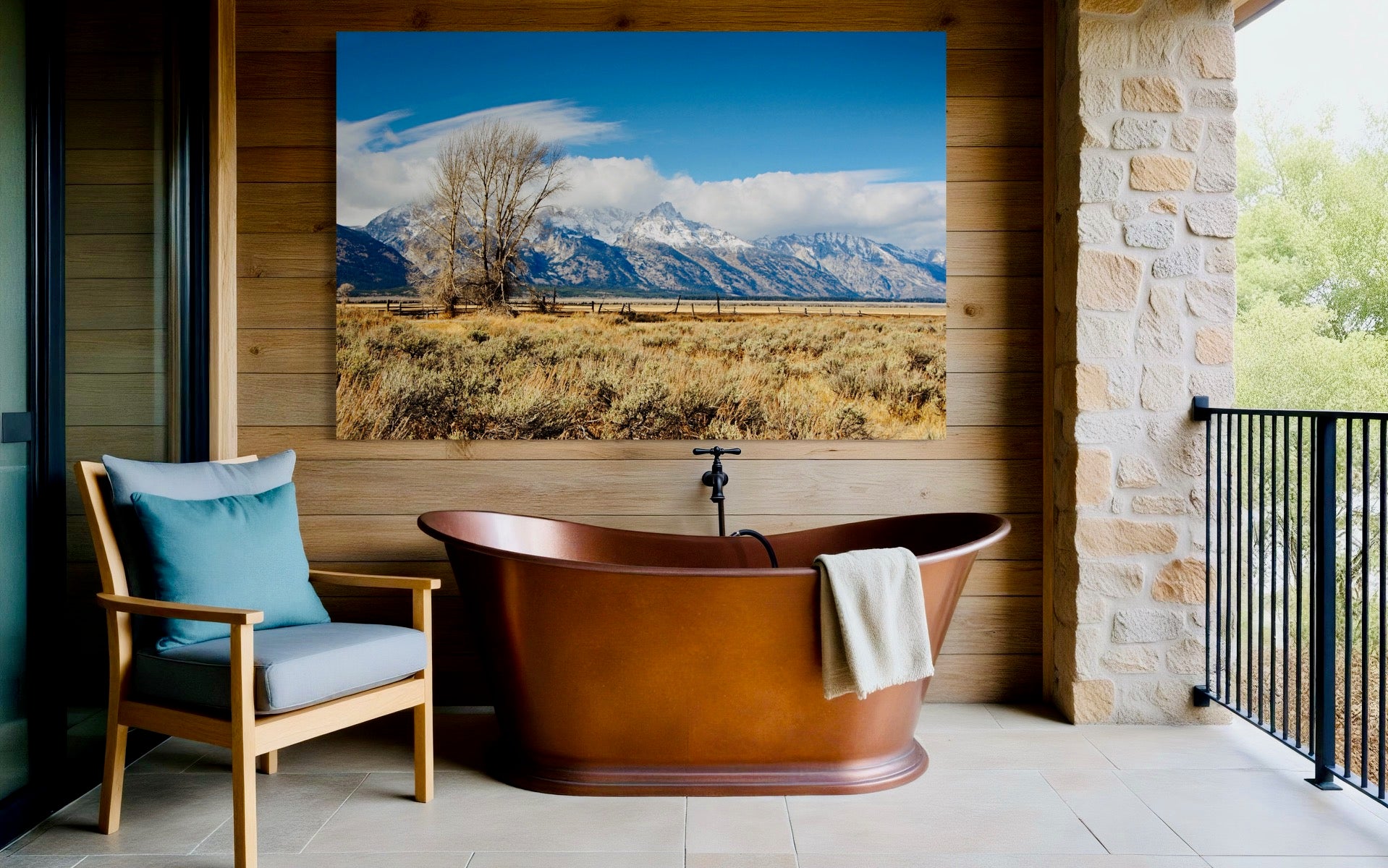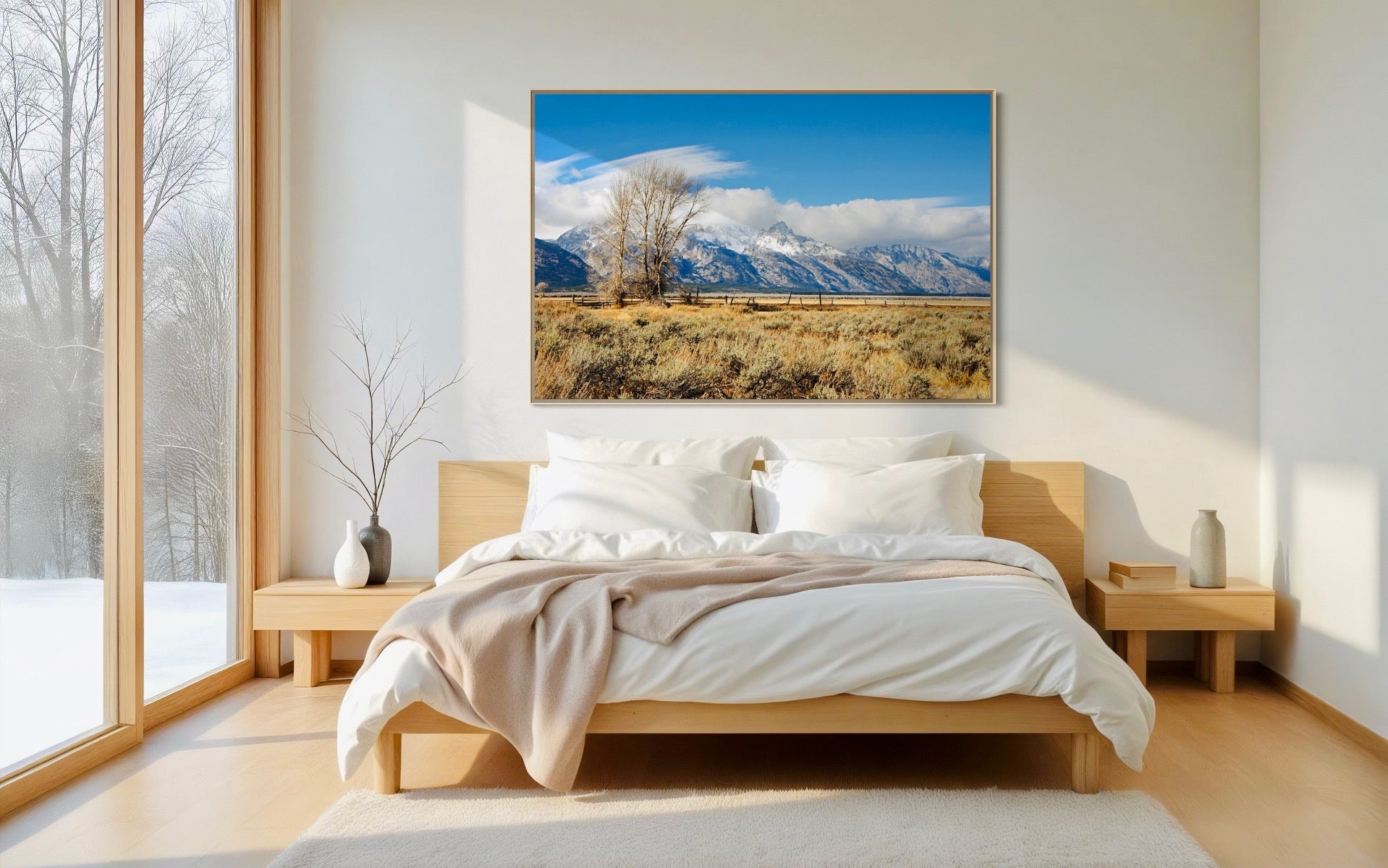 Experience the stunning beauty of the Teton Mountains at Mormon Row in Wyoming with this captivating artwork. This image captures the breathtaking landscape of one of America’s most iconic natural sites. Perfect for those who appreciate serene mountain views and rustic charm. Elevate your space with this beautiful portrait of natural beauty.